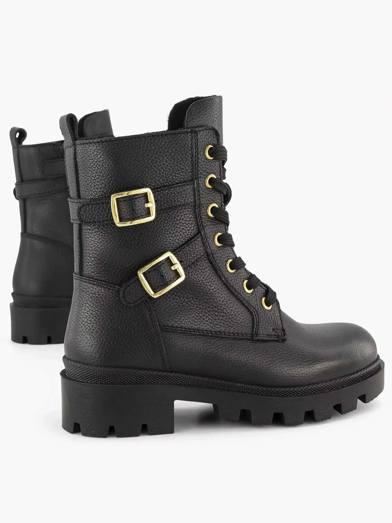 Black Leather Lace Boot