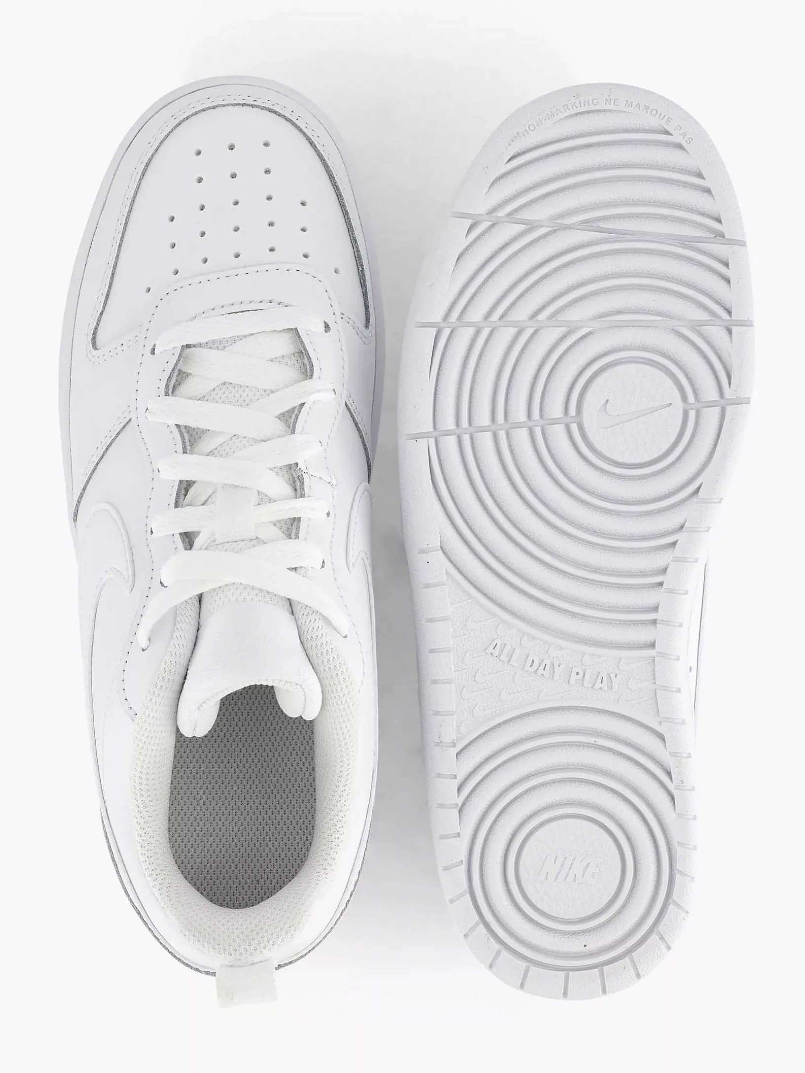 Just Do It! With This Trendy Court Borough Low Sneaker From Nike. This White Lace-Up Sneaker Is Made Of Imitation Leather And Has An Inner Lining Of The Air-Permeable Material Mesh. Dl>